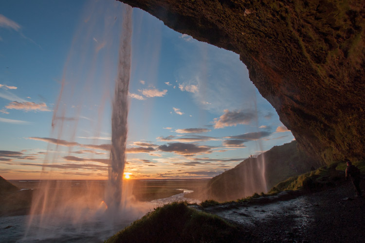 De Svartifoss zelf wordt geflankeerd door vele meterslange ijspegels. De pegels steken mooi af tegen het zwarte basalt dat normaal gesproken het decor is van deze waterval. Terwijl we dit schouwspel fotograferen vallen zo nu en dan hele groepen ijspegels met donderend geweld naar beneden. Een mooi gezicht, maar je moet er niet aan denken dan je daar net onder zou staan.