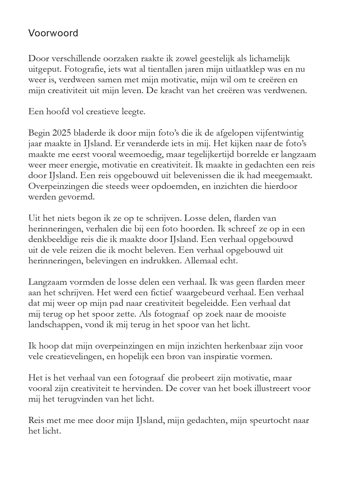 In dit boek neemt Gerry je mee op een persoonlijke tocht door het ruige IJsland, een land dat hem al decennialang inspireert. Zijn reis is geen rechte lijn, maar een kronkelend pad vol herinneringen, reflecties en onverwachte ontmoetingen. Hij deelt niet alleen de schoonheid van het IJslandse landschap, van watervallen en gletsjers tot verlaten fjorden en het magische noorderlicht, maar ook de innerlijke reis die nodig is om opnieuw te durven dromen.